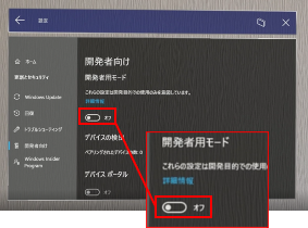 [開発者向け]画面が開きました。[開発者用モード] を「オン」にします。
