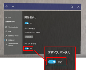 [デバイスポータル] をエアタップして「オン」にします。