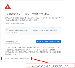 ブラウザのアドレスバーに「https://127.0.0.1:10443/」と入力します。下記のような表示がでたら、左下にある[詳細設定]ボタンをクリックします。