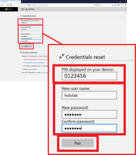 初めてDevice Portalに接続する際に、PINコードを使用したペアリングを行います。