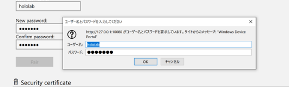 確認画面が表示されます。先ほど設定した [ユーザー名]と[パスワード]を入力して、[OK]をクリックします。