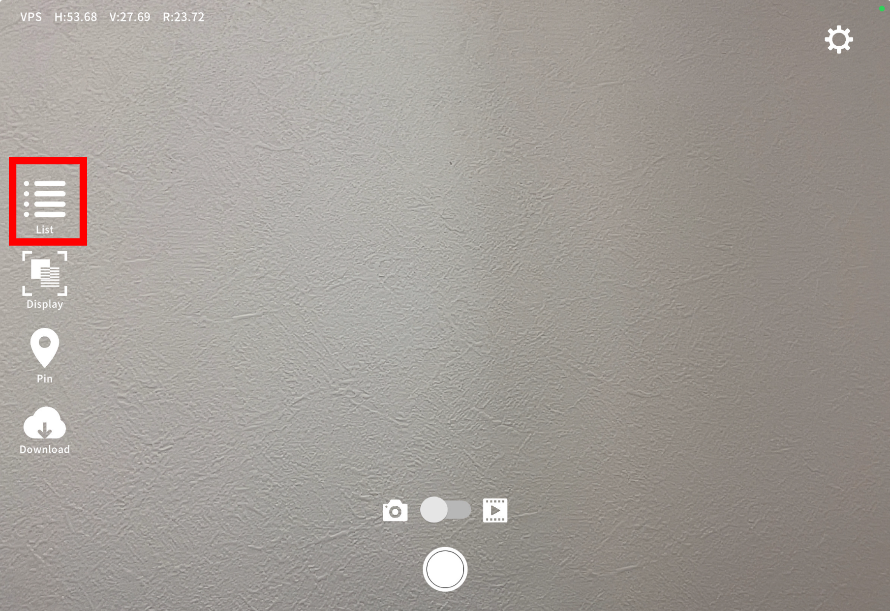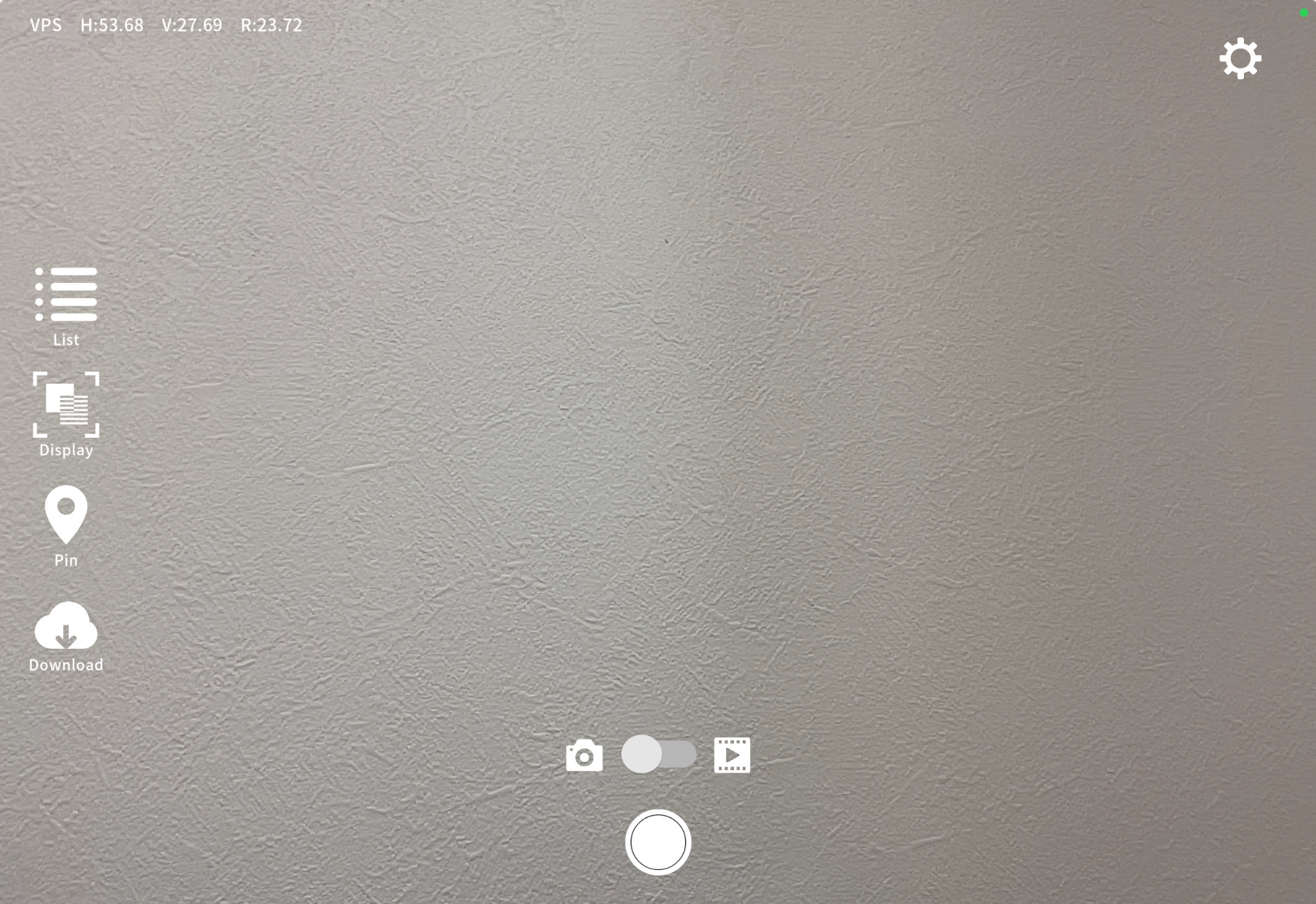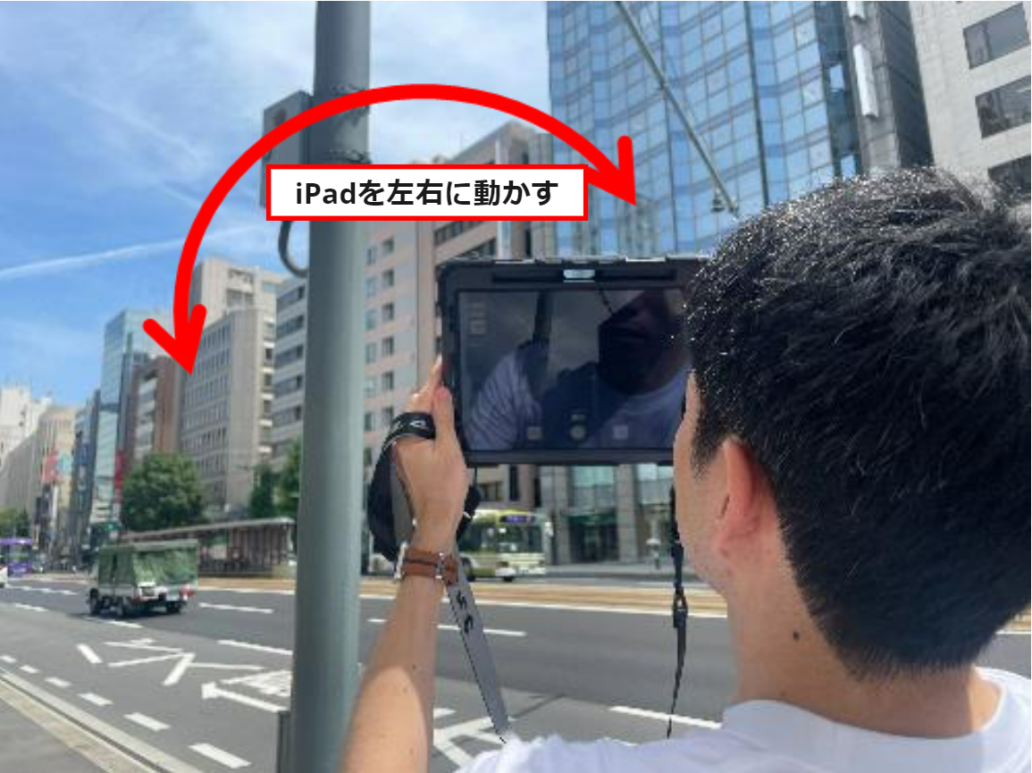 画面内に周辺の建物が見えるようにiPadを動かします。VPSの数値は、VPSの精度を表すものです。「0」に近いほどコンテンツの位置の精度が高くなります。