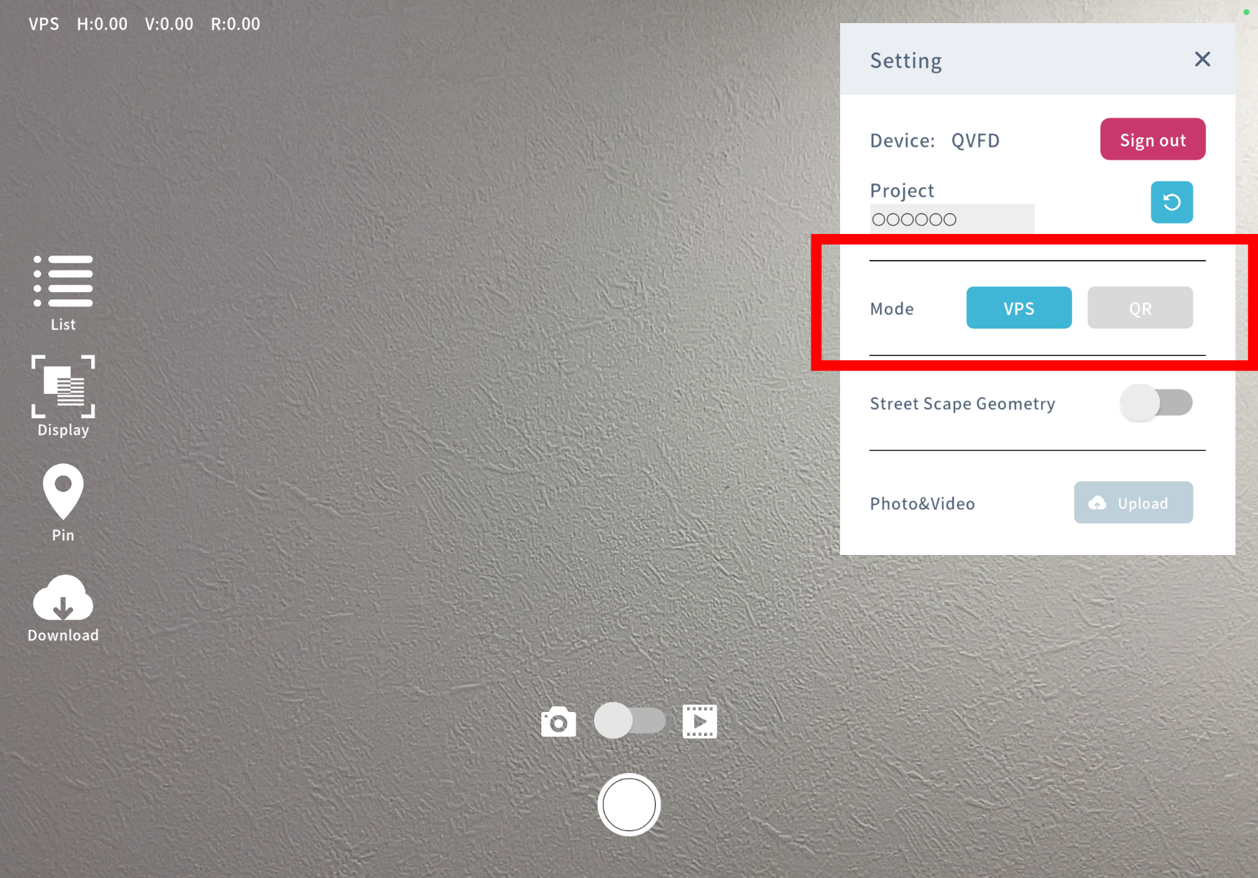 torinome ARにはコンテンツ表示モードとして「VPS Mode」と「QR Code Mode」の2つがあります。