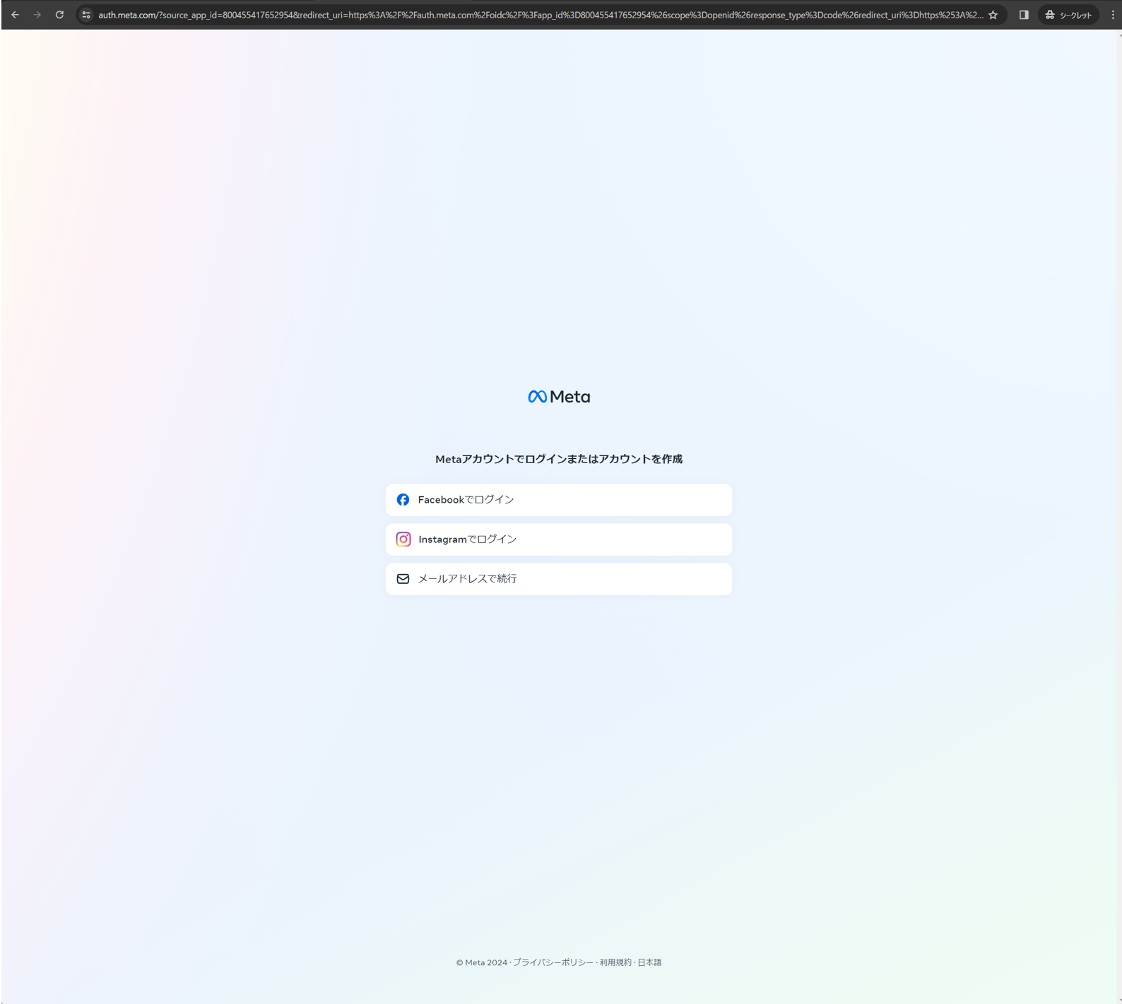 Meta アカウントの登録
