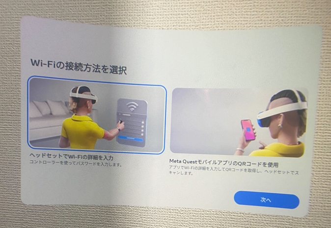 ここでは「ヘッドセットでWi-Fiの詳細を入力」を選択して「次へ」を選択