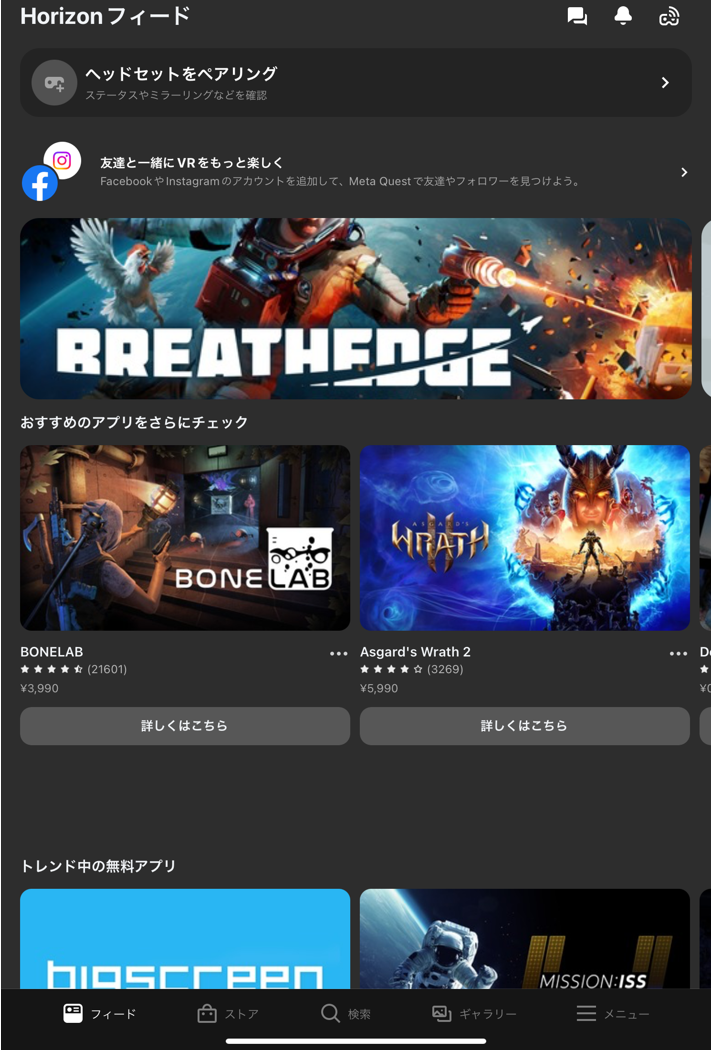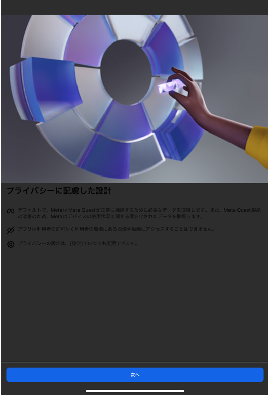 - この表示が出た後にスマートフォンのMeta Quest アプリを起動します (注:スマートフォンのBluetoothはONにしておいてください)