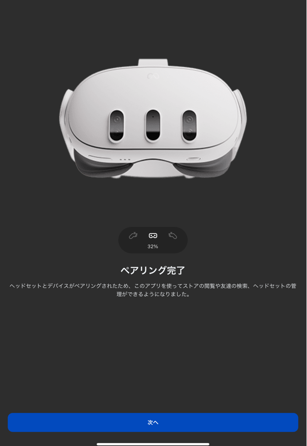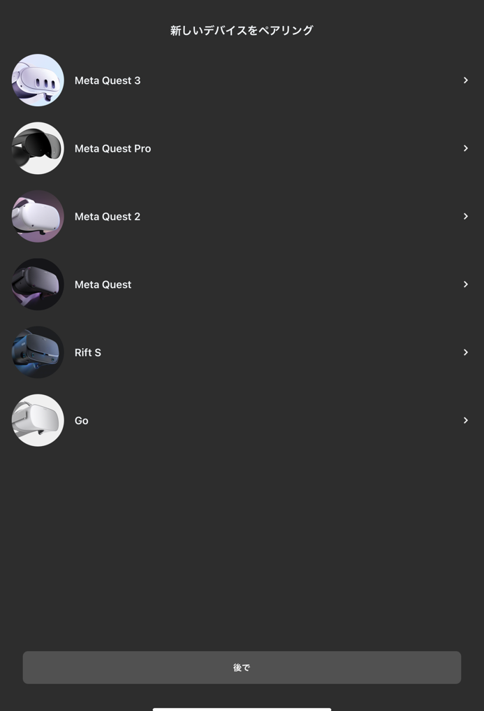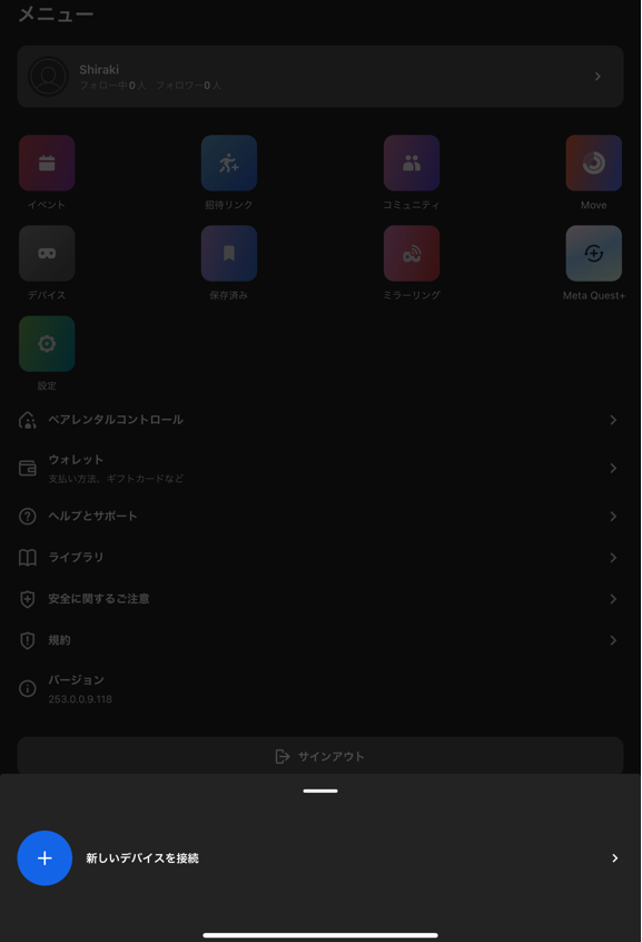 以前 Meta Quest アプリ にヘッドセットを追加したにもかかわらず、いつの間にか表示されなくなったような場合に再度ヘッドセットを追加する方法です