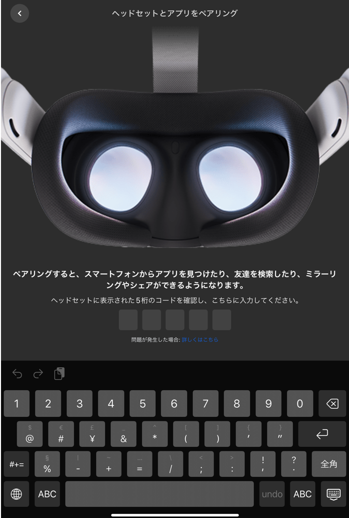 ペアリングコードがMeta Quest アプリに入力する5桁のコードとなります - ペアリングコードを入力するとペアリングが開始します
