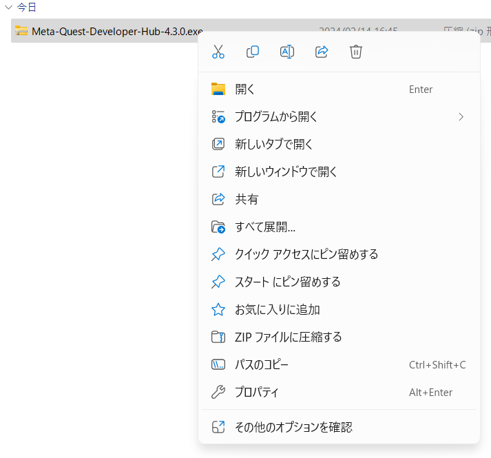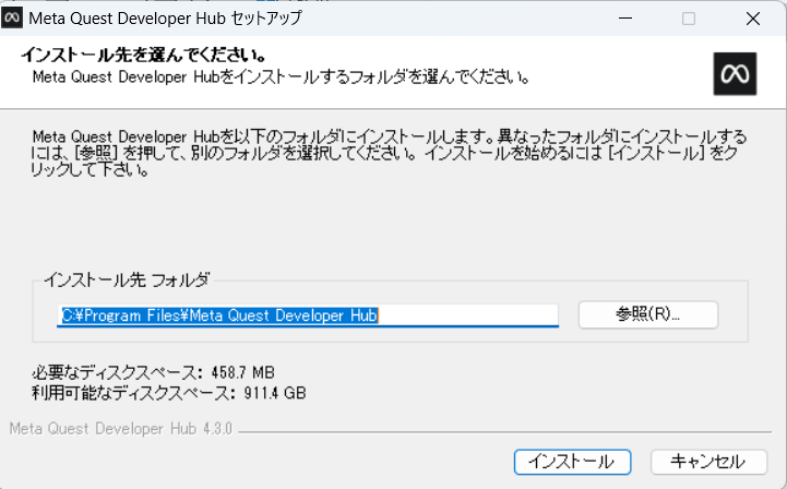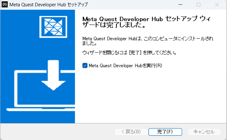 - Meta-Quest-Developer-Hub.exe をダブルクリックします