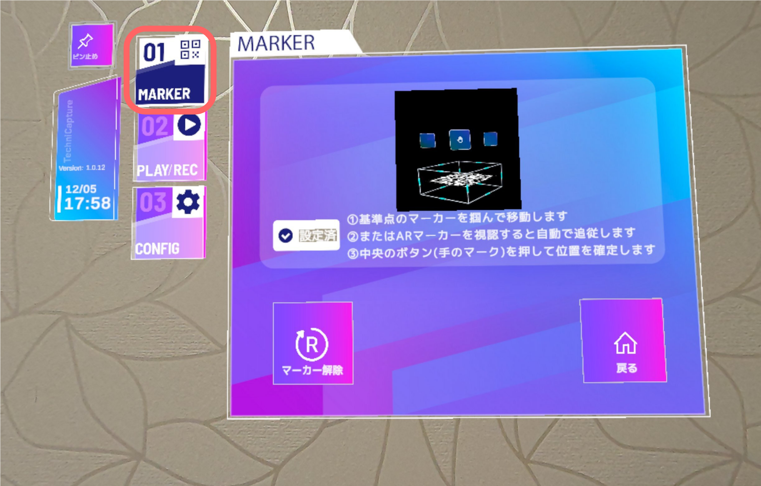 モーションを正しく記録・再生するために、現実空間に目印(ARマーカー)を置く必要があります。