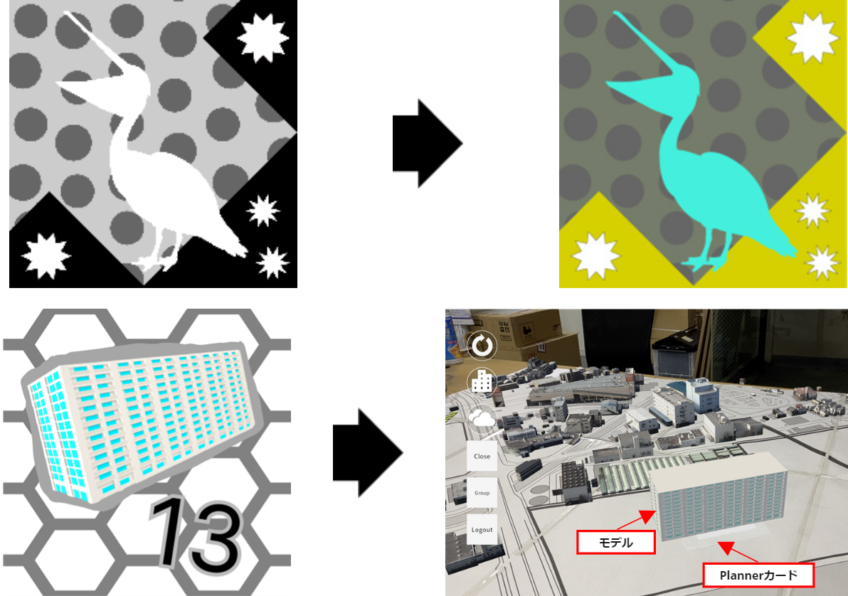 ①位置情報カードを読み込んだ後にPlannerカードを読み込み、モデルを表示させる。