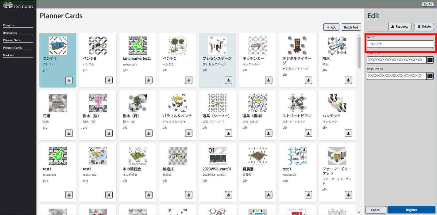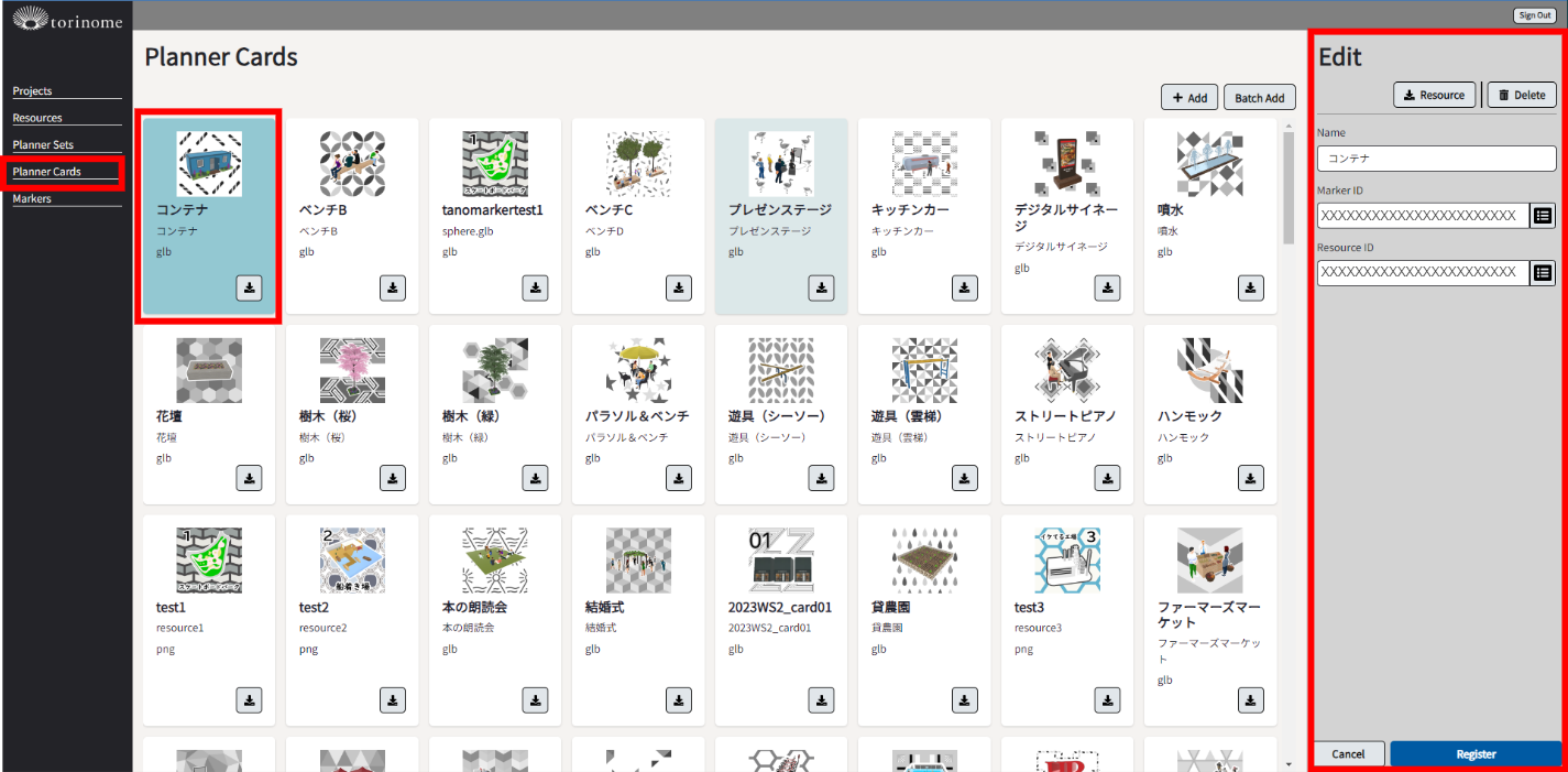 メニューより「Planner Cards」を選択し、Plannerカード一覧を表示します。