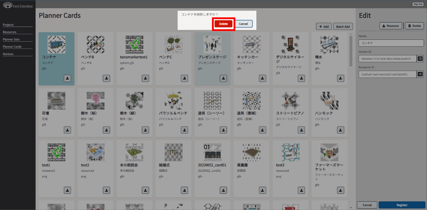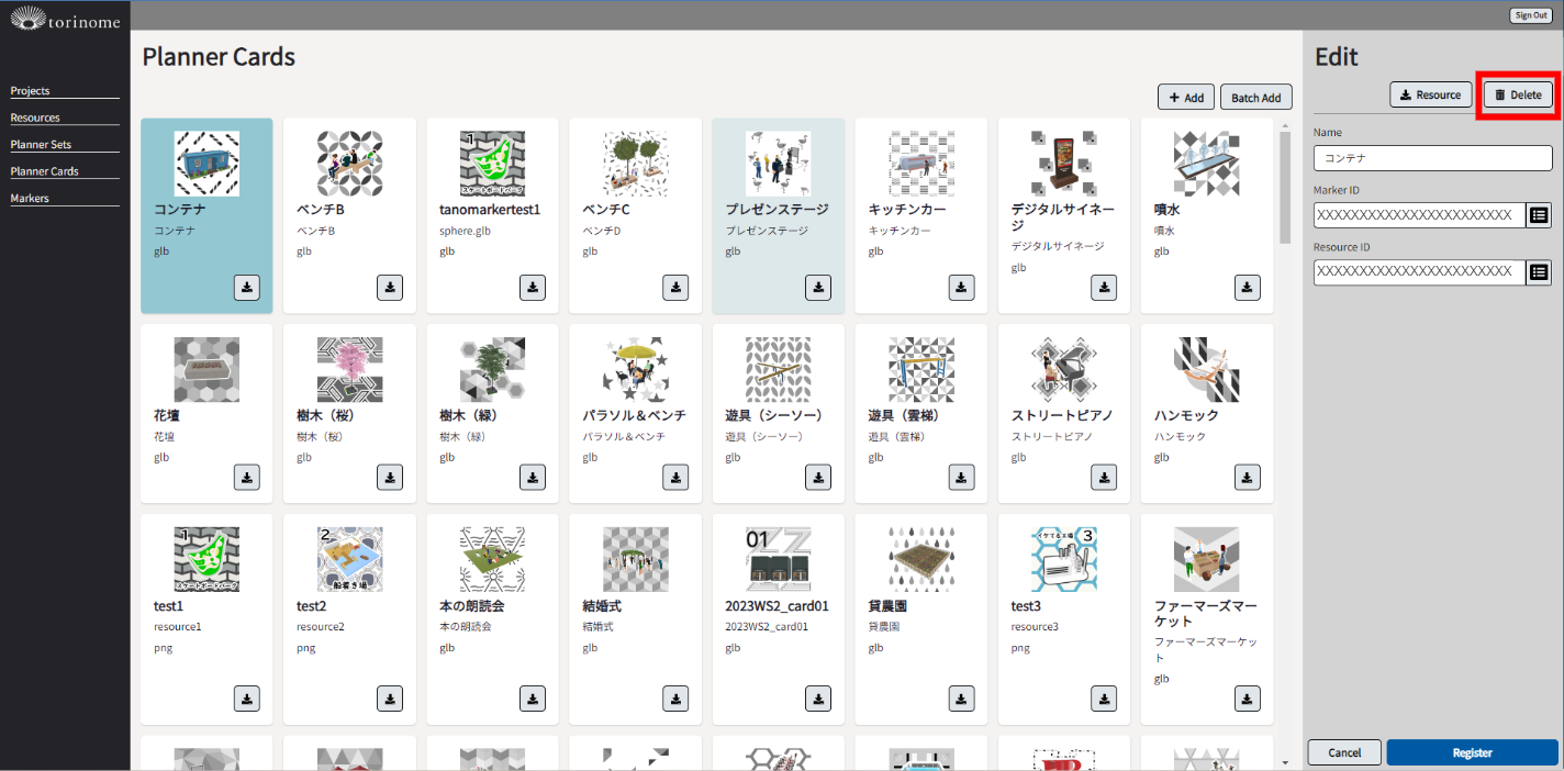 Plannerカードを削除する