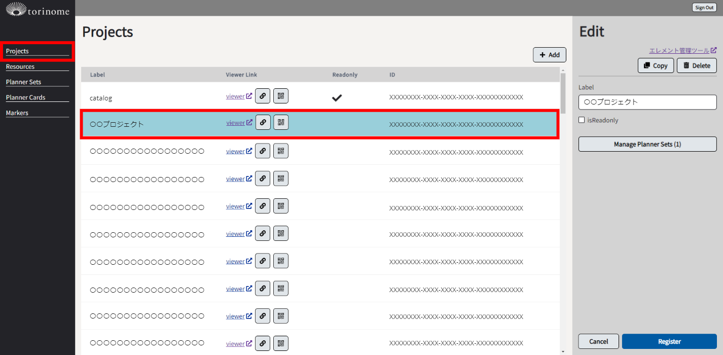 ※「isReadonly」にチェックを入れると、torinome Baseの登録・編集・削除ができなくなります。