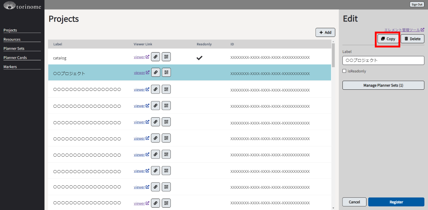 最期に「Register」を選択すると、プロジェクト複製されます。
