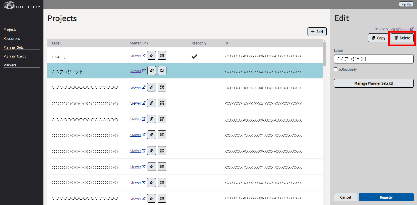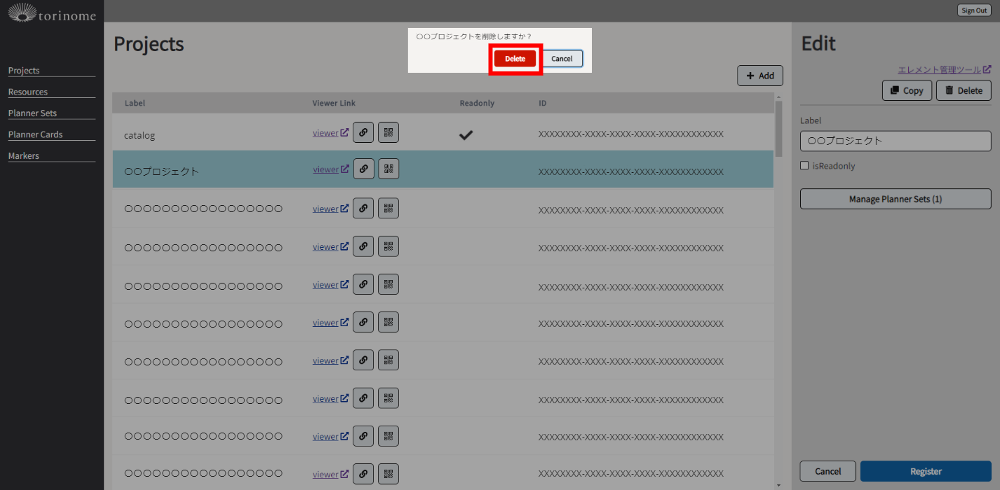 プロジェクトを削除する