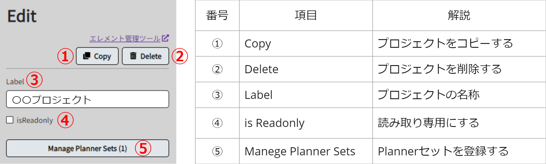 プロジェクトを編集する