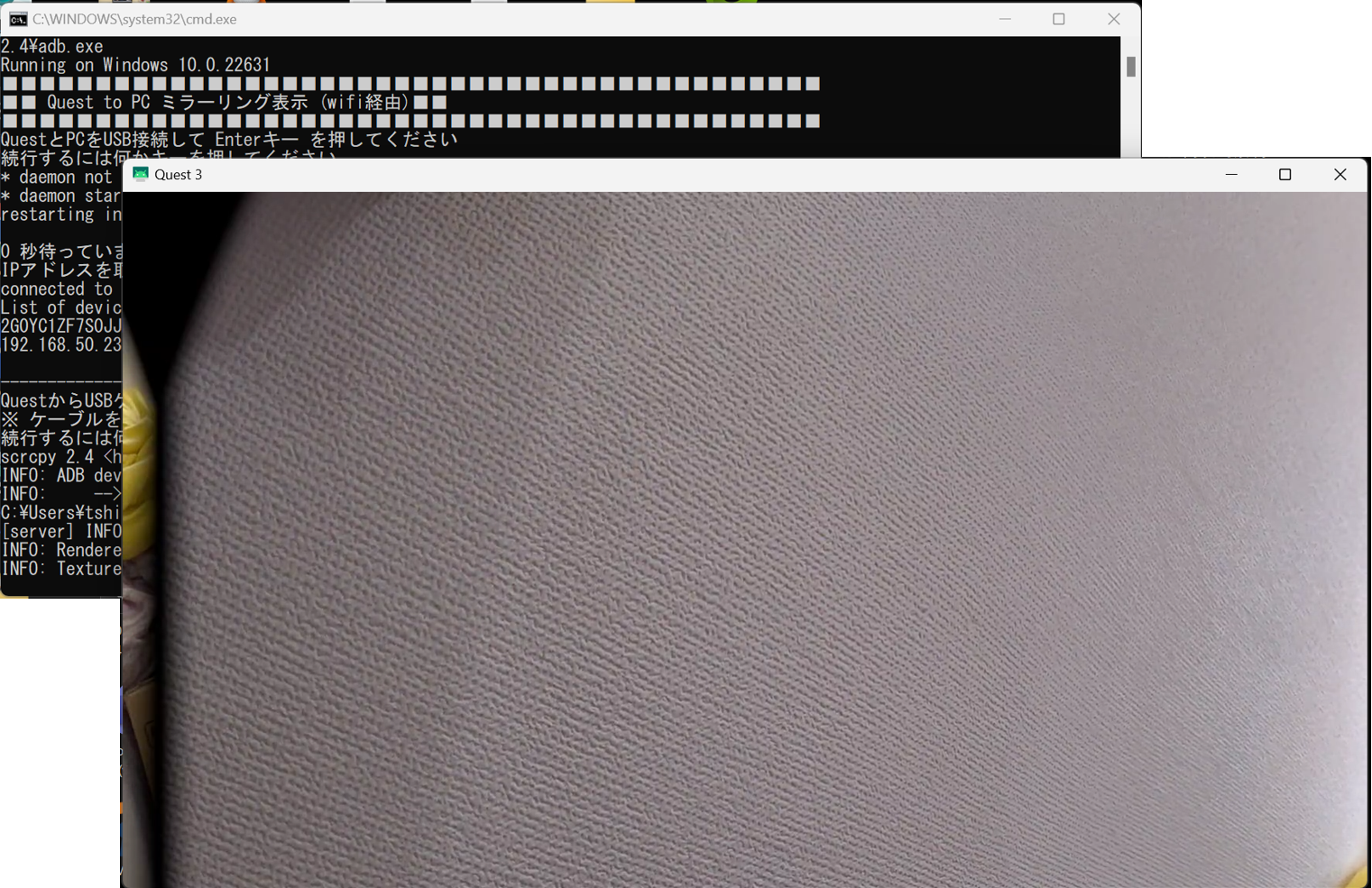 - 「Questミラーリング表示_Wifi経由.bat」を実行します