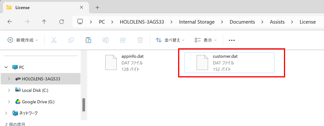 [HoloLens 2]\Internal Storage\Documents\Assists\License
