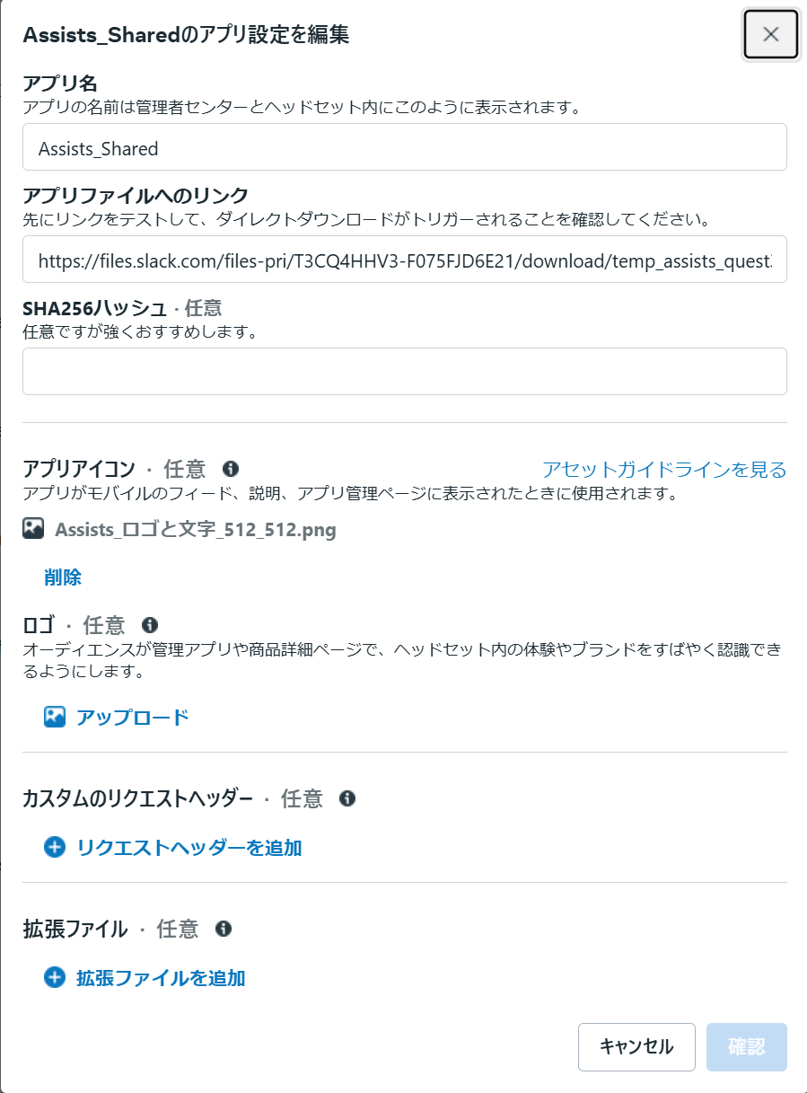 ・アプリファイルへのリンク にはWEBサイトなどダイレクトにアクセス可能なリンクである必要が