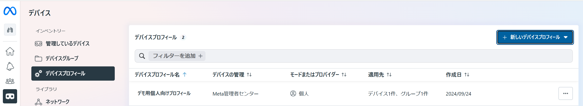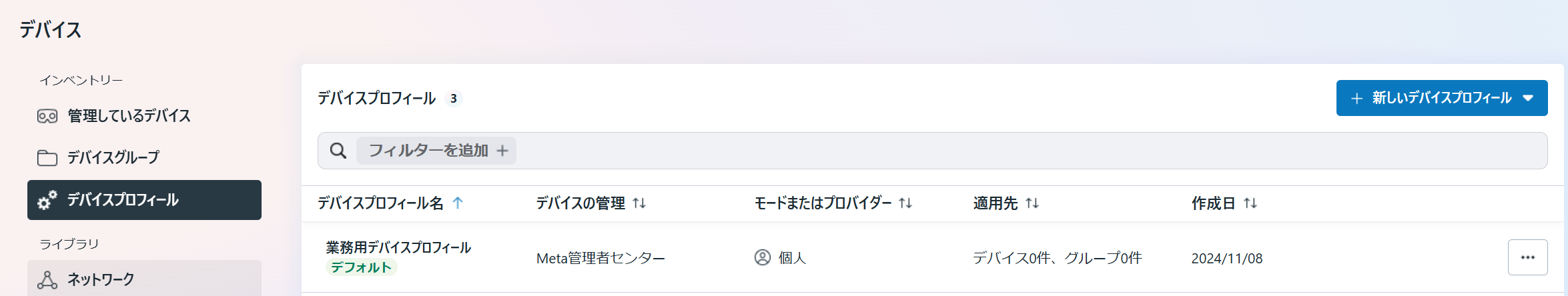 10.設定後、デバイスプロフィールの一覧に戻ると追加したデバイスプロフィールが表示されます。