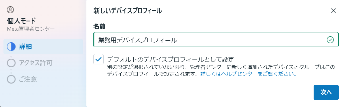 2.デバイスプロフィールの名前を設定します。