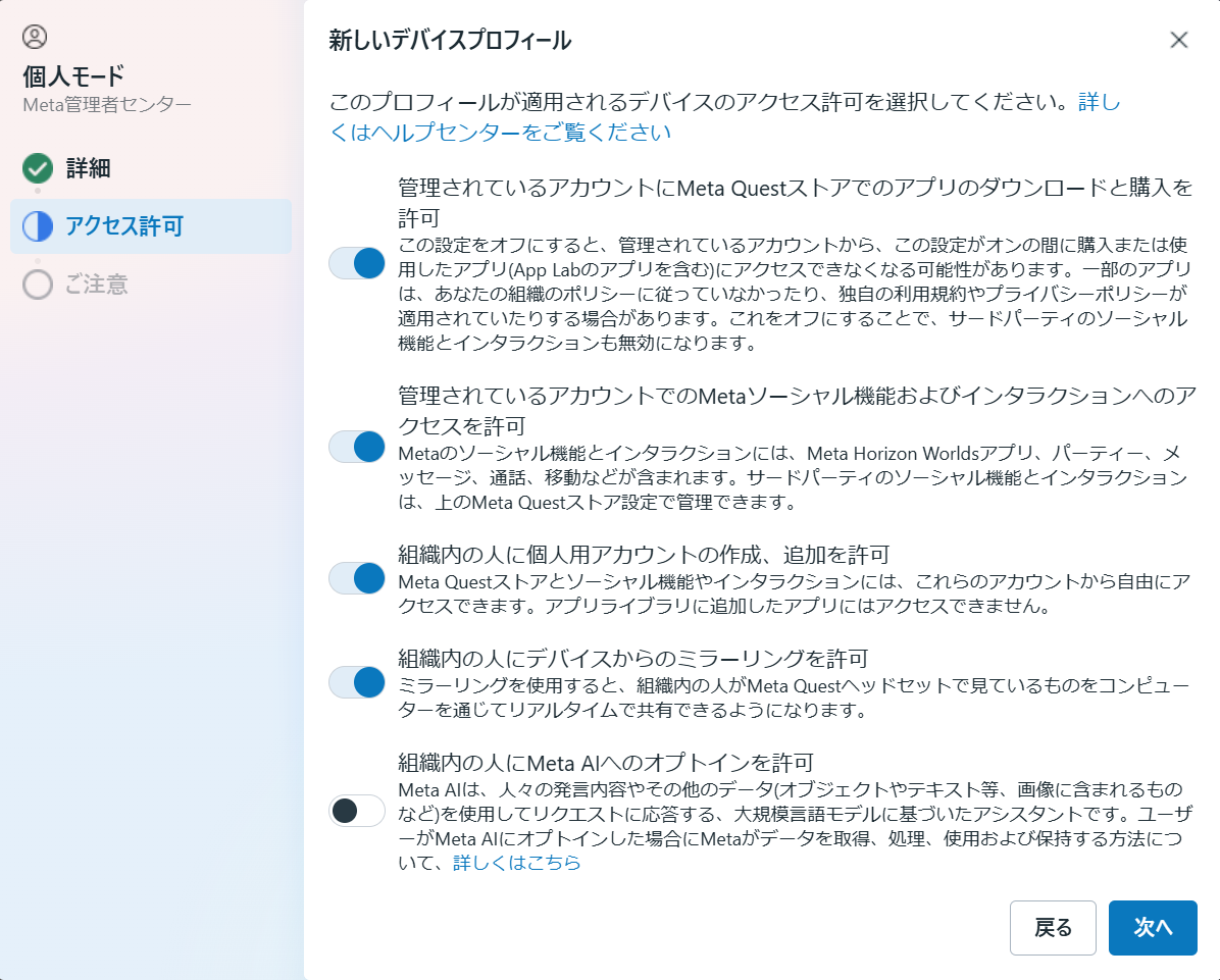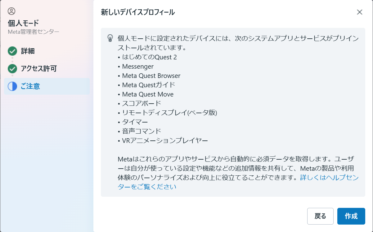 そのまま続けるとQuest for Businessの管理下にないデバイスとなってしまうので、