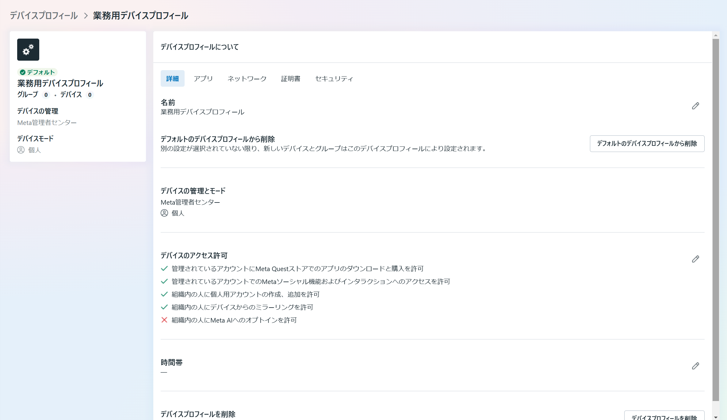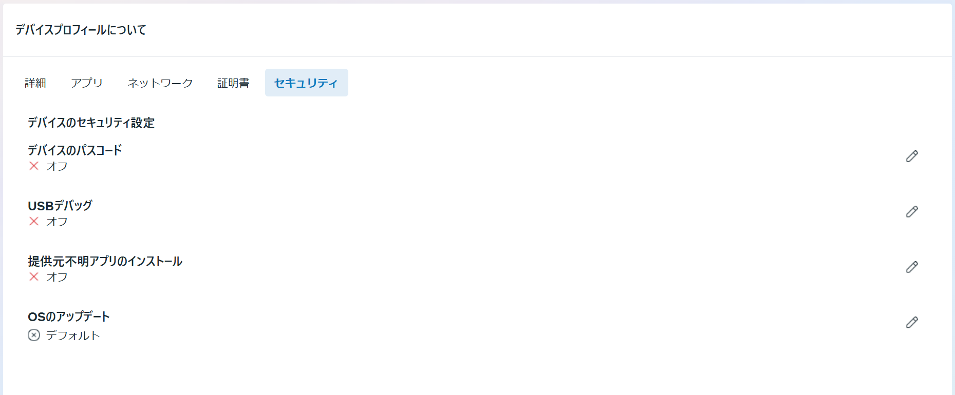デバイスごとに権限を設定することも可能ですが、デバイスの権限設定をデバイスプロフィールで作成して適用する方法を紹介します。