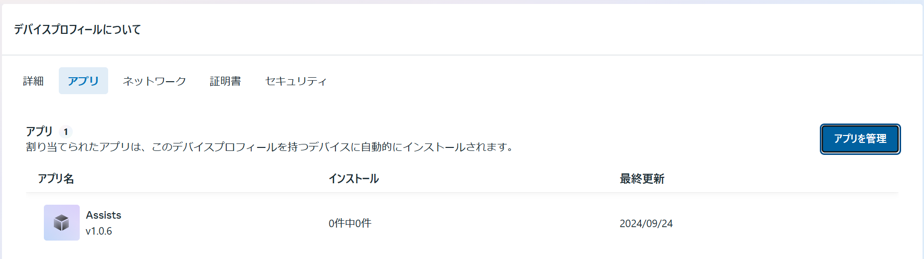 6.アプリ からデバイスプロフィールにアプリを設定できます。