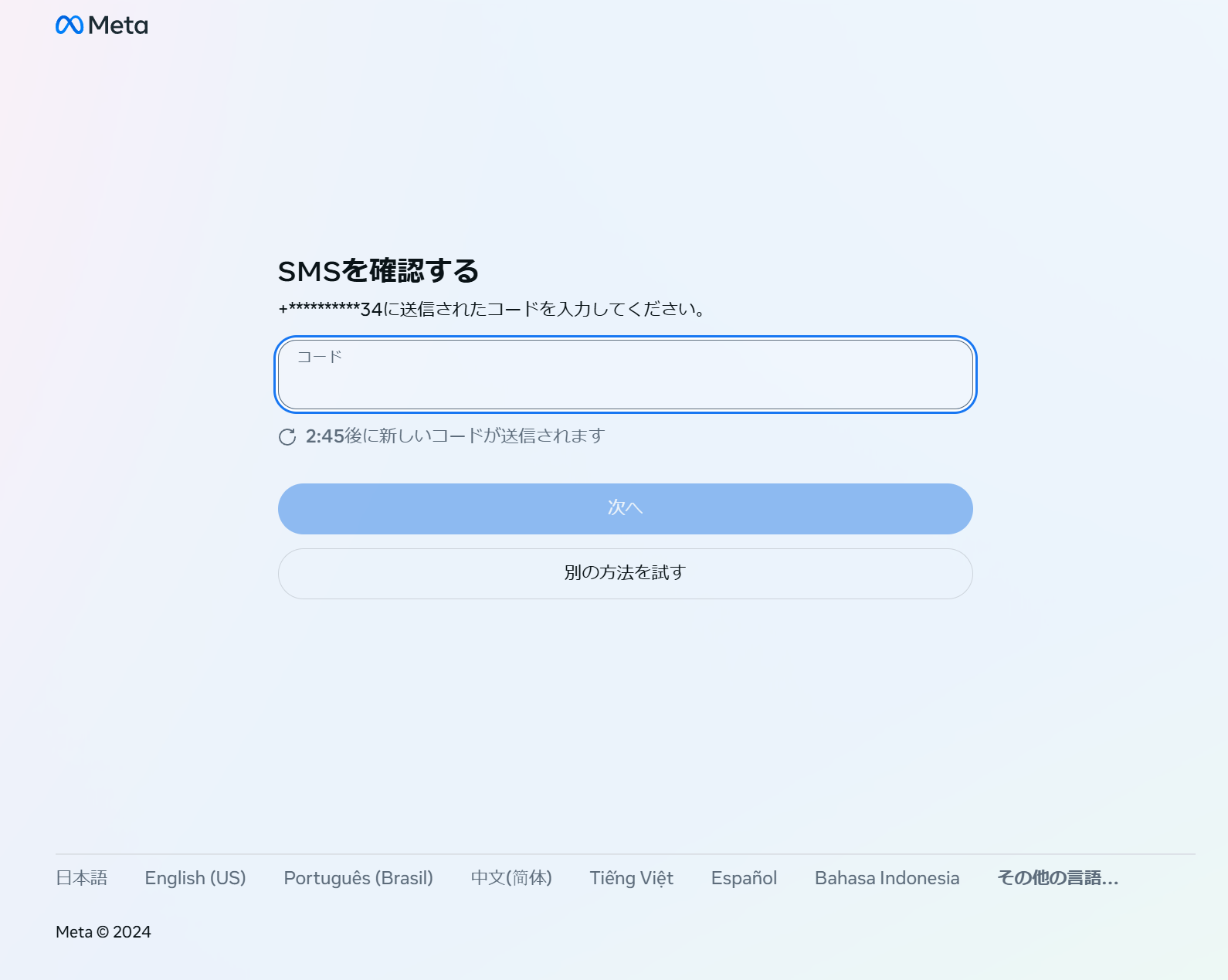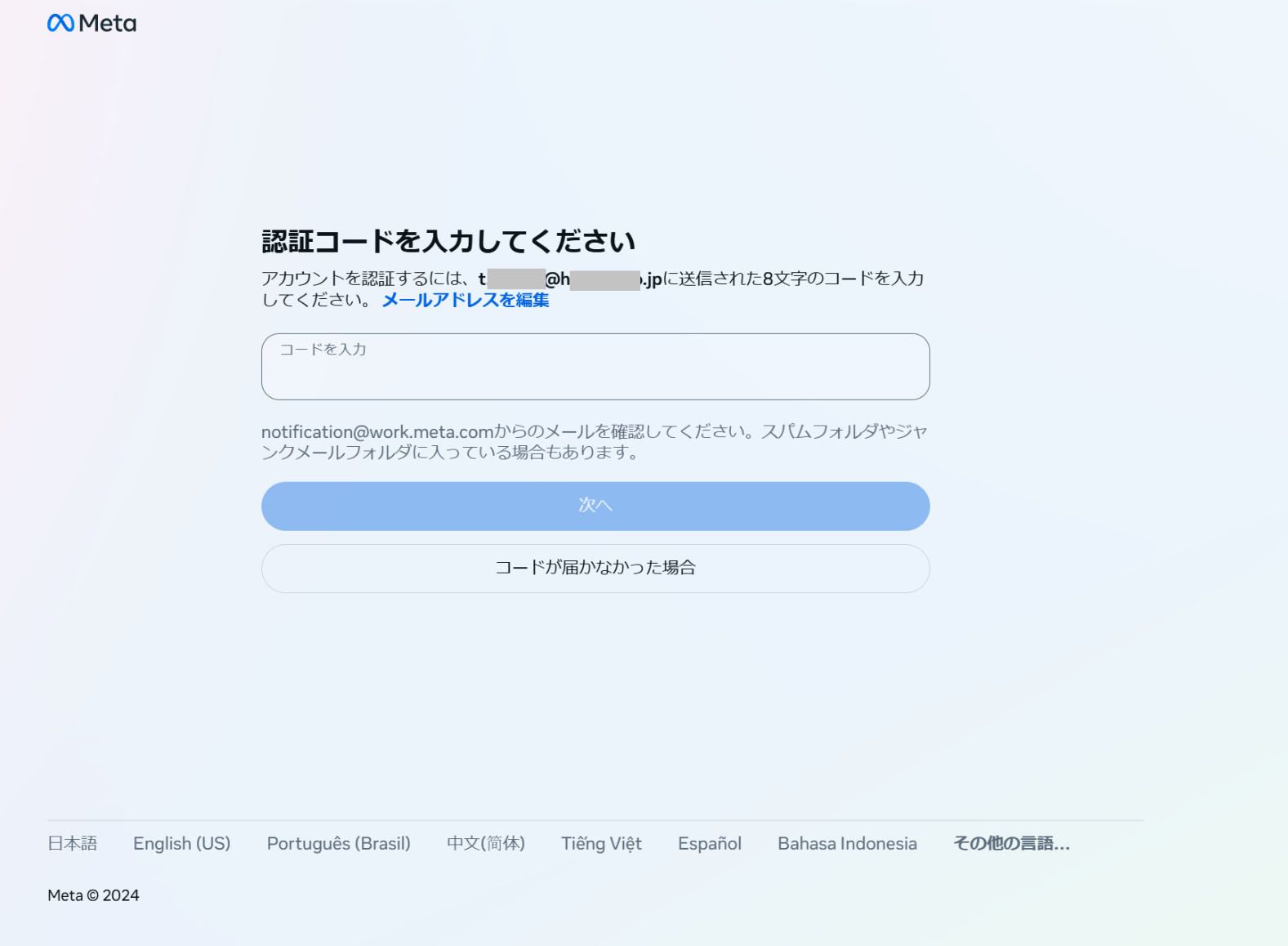 4.認証コードを入力します。
