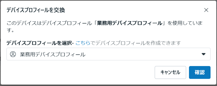 セットアップ時にはデフォルトのデバイスプロフィールが適用されています、変更する場合は以下となります。
