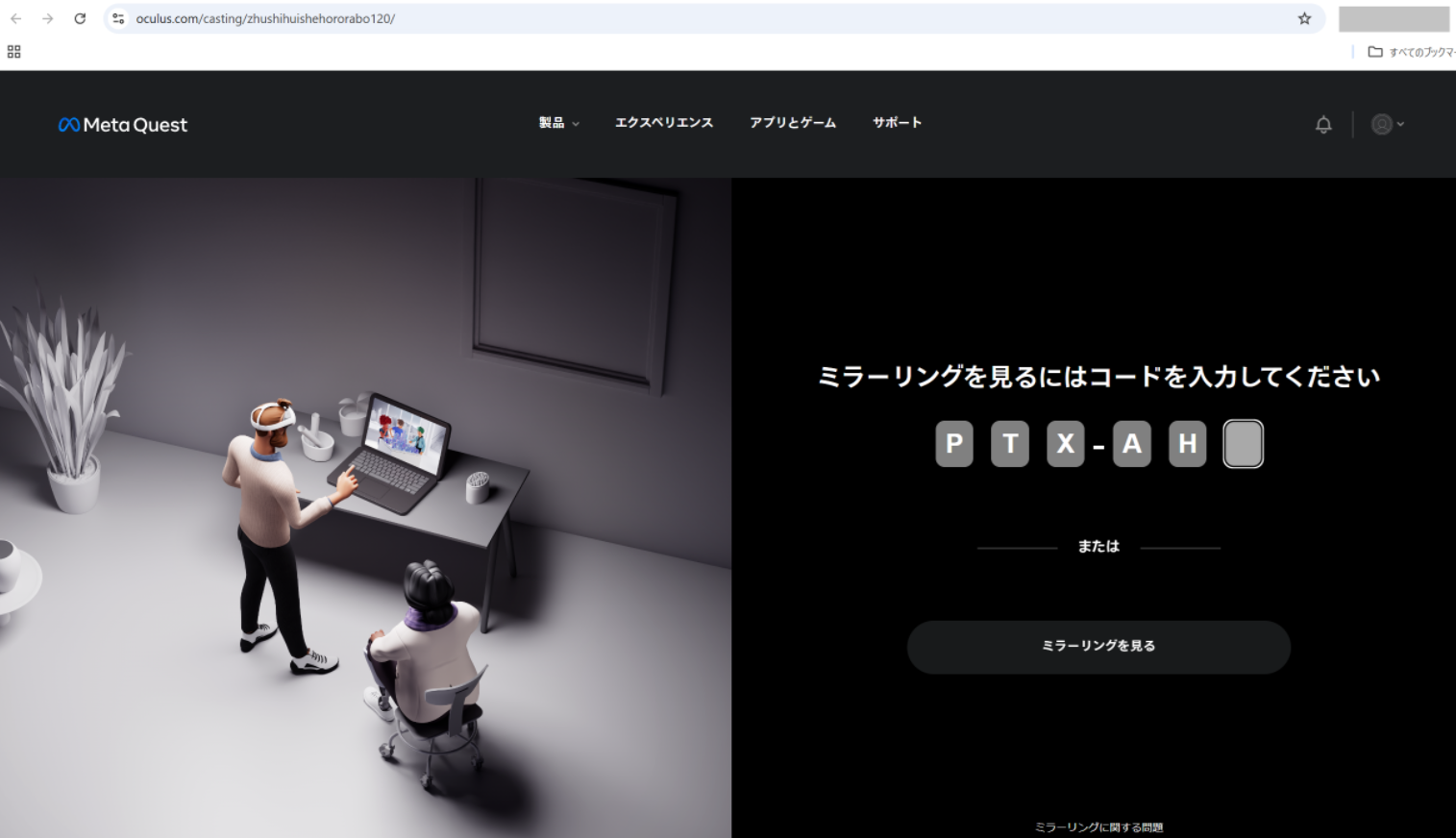 4.PCのブラウザで表示されたウェブサイトにアクセスしコードを入力します。