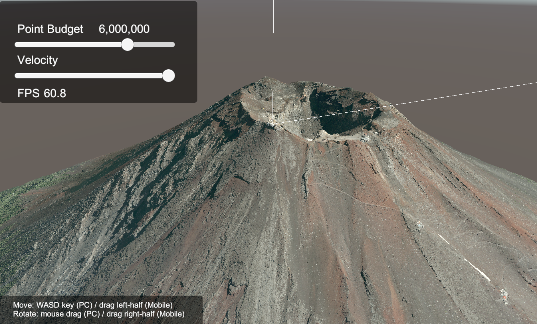 Unity の再生ボタンを押してサンプルシーンを実行すると、ゲームウィンドウに点群が表示されます。